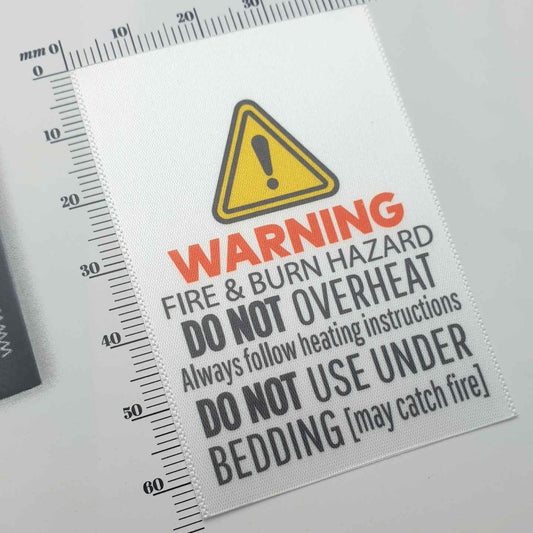 MICROWAVABLE HEAT PACK SAFTEY WARNING LABELS - PRINTED SATIN OR TAFFETA LABELS