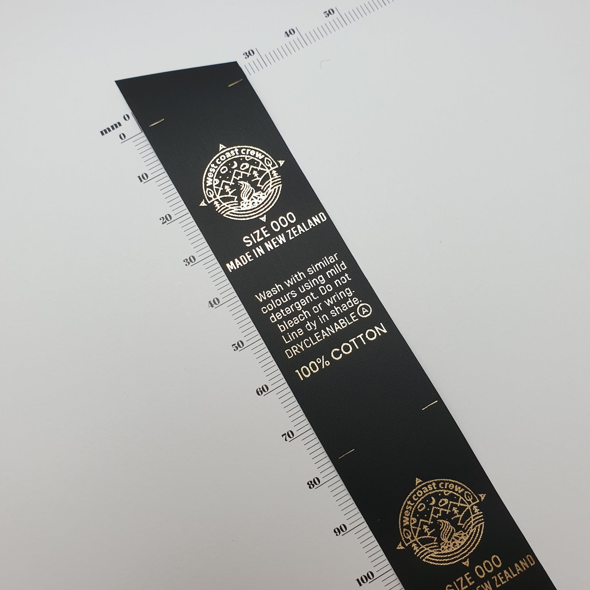 These custom printed fabric labels are printed in New Zealand.
